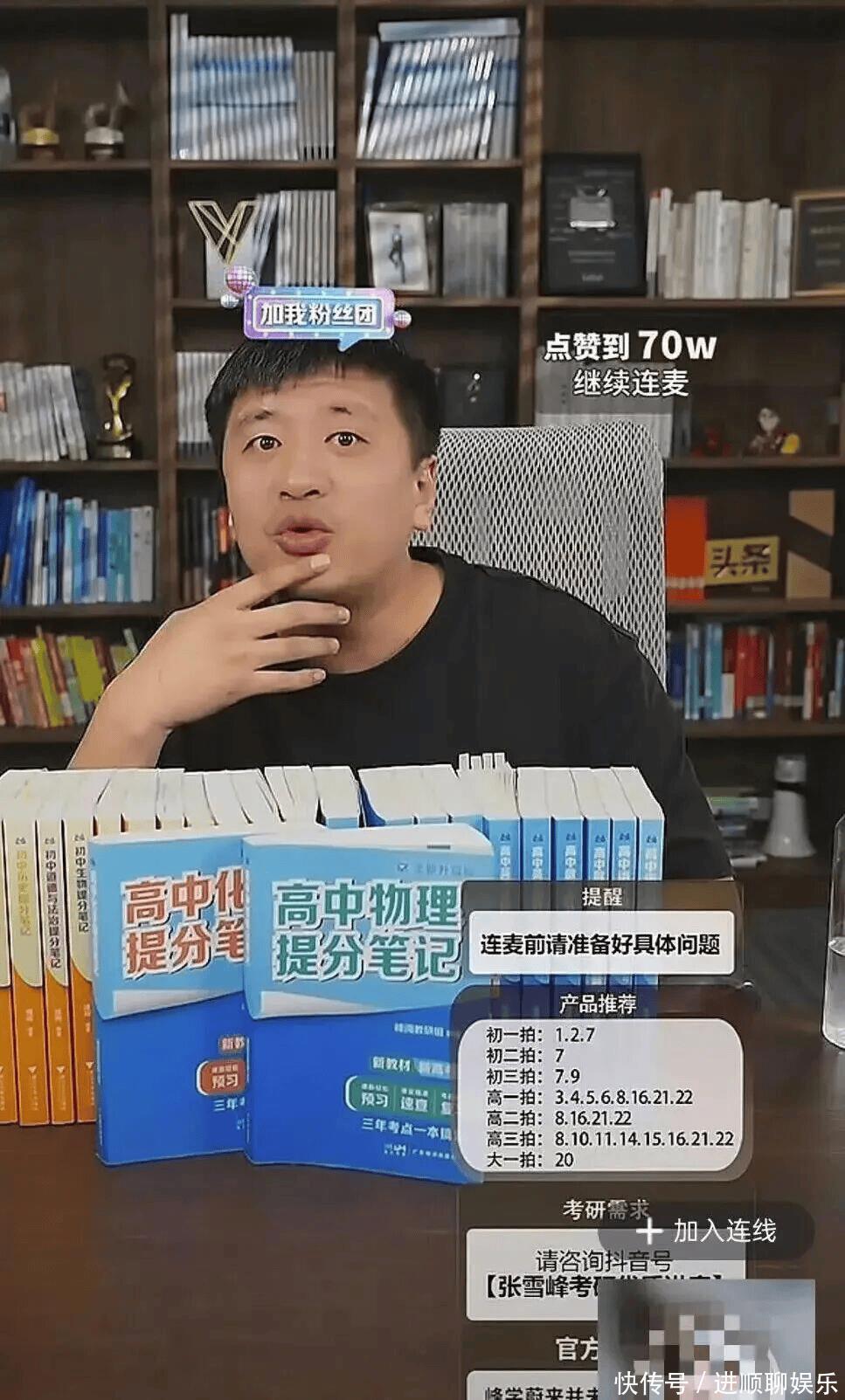 点击输入图片描述(最字)复播的场景依旧是他熟悉的书房,桌面摆着一摞由其公司编撰的初高中各学科提分笔记,看似已有带货架势。但张雪峰十分 “克制”,一再强调 “今晚只连麦回答疑问,不带货”,还自侃 “不想复播第一天就被‘张雪峰首场直播疯狂带货’的热搜卷进去”。即便如此,网友依旧十分买账,直播间最高同时在线人数达到 4 万。
