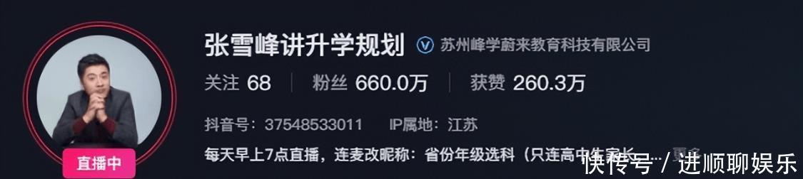点击输入图片描述(最字)以往直播时,张雪峰常用个人大号 “张雪峰老师”—— 该账号为黄 V 认证,粉丝量超 2650 万。但此次复播,或许是出于稳妥考虑,他选择了公司名下的 “张雪峰讲升学规划” 账号,该账号日常由员工负责直播带货,粉丝量虽不及大号,也有 660 万。
